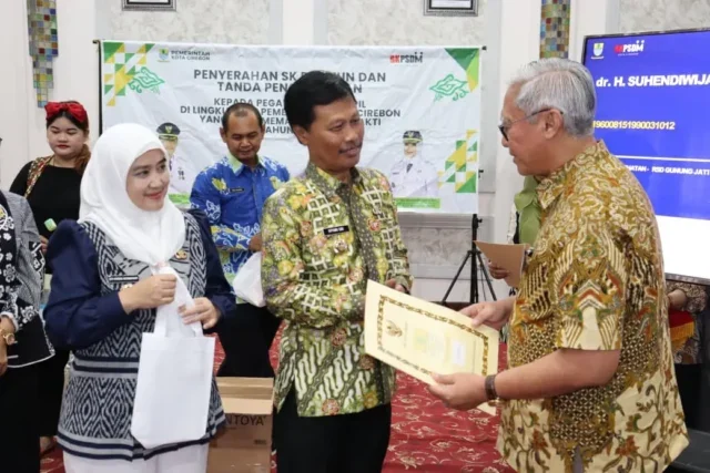 Bisniscirebon.com: Pemerintah Kota Cirebon secara resmi menyerahkan Surat Keputusan (SK) Pensiun dan Tanda Penghargaan kepada Aparatur Sipil Negara (ASN) yang akan memasuki masa purna tugas di Balai Kota Cirebon. Acara ini menjadi bentuk penghormatan sekaligus apresiasi dari pemerintah daerah kepada para ASN yang telah mendedikasikan sebagian besar hidupnya untuk melayani masyarakat.