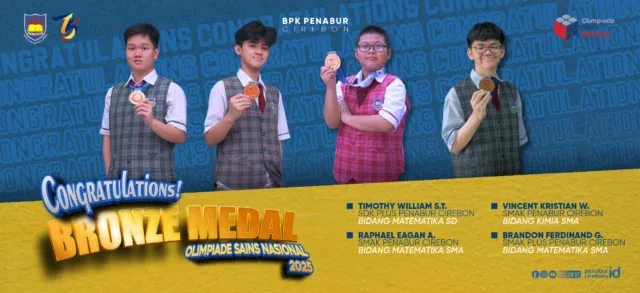 Dalam kompetisi bergengsi tingkat nasional yang diikuti ribuan pelajar dari seluruh Indonesia ini, BPK PENABUR Cirebon berhasil meraih empat medali perunggu dari jenjang SD dan SMA.