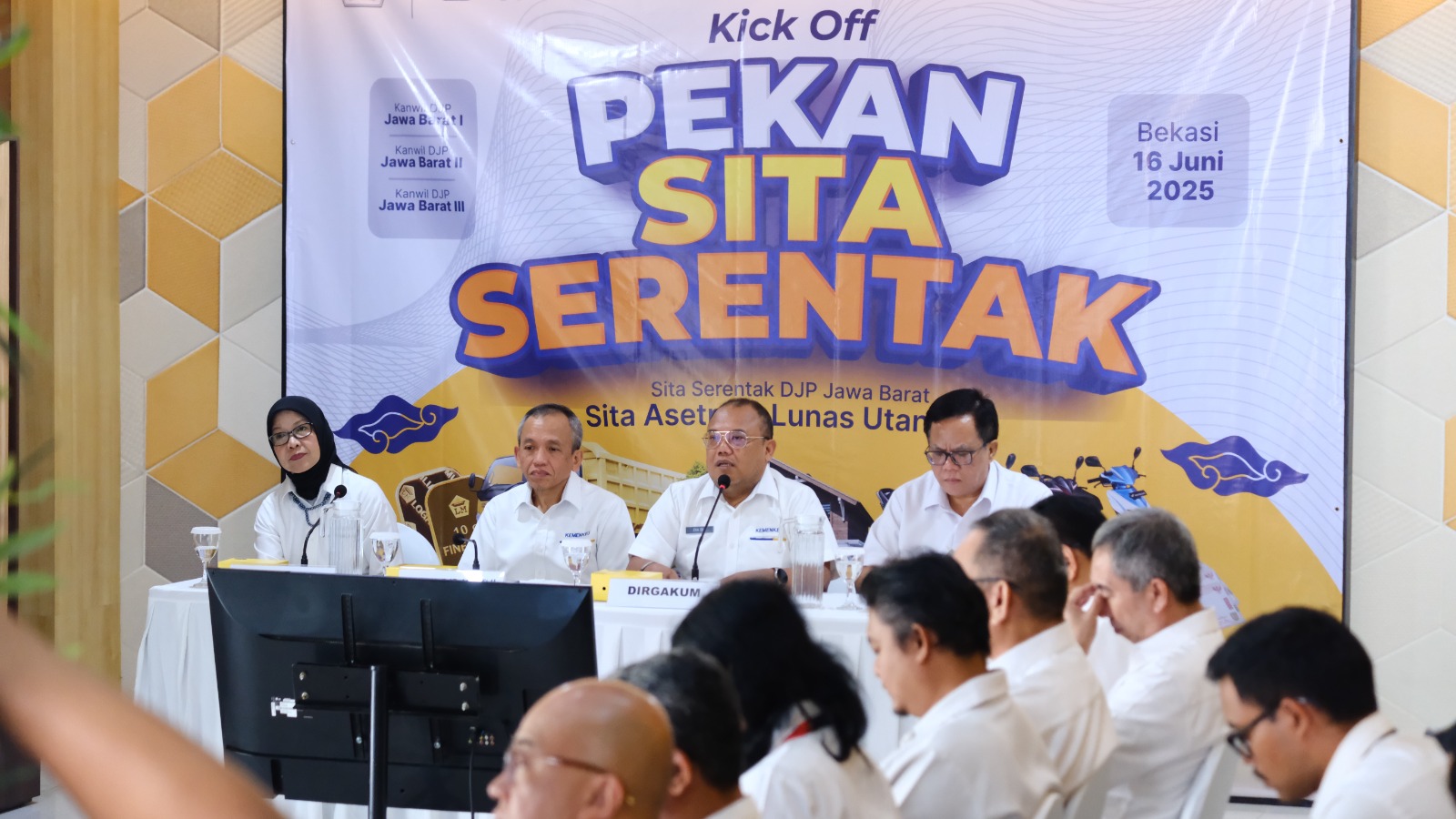 Kick-off Pekan Sita Serentak Tahun 2025 dilaksanakan secara hybrid sebagai bentuk transparansi dan pengawasan internal. Dalam kegiatan ini, Juru Sita dari KPP terpilih mengeksekusi penyitaan objek pajak berupa tanah secara langsung di lapangan, yang disiarkan secara langsung dan disaksikan oleh pejabat Direktorat Jenderal Pajak.