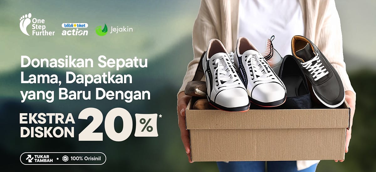 Menjawab tren ini, Blibli hadirkan kembali Program Tukar Tambah sepatu bertajuk One Step Further dengan menggandeng lebih dari 30 jenama dan Jejakin sebagai impact partner. Inisiatif di bawah payung ESG Blibli Tiket Action ini melibatkan pelanggan, brand partners dan impact partner dalam mendorong terwujudnya gaya hidup yang lebih berdampak dan berkelanjutan.